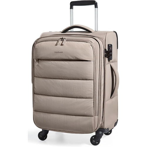 20 Inch Soft Suitcase | Airline Approved, Lightweight Spinner with PVC Wet\Dry Pockets for Short Trip, Camel Color